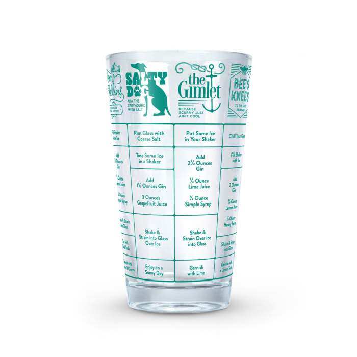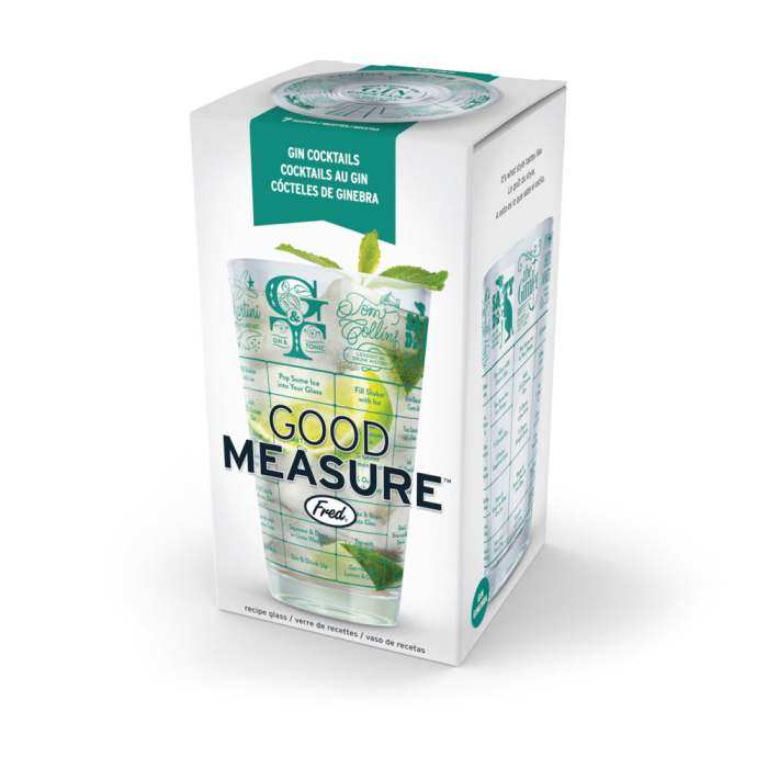 Mix it up with GOOD MEASURE! Fred's 16-ounce measuring glasses are printed with seven delectable cocktail recipes that are sure to turn you into the most-exacting mixologist. Available in seven individual styles: Whiskey, Gin, Rum, Tequila, Vodka, Beer - and the cure for all the others - Hangover. Cheers! Hand wash only. The Good Measure Recipe Glass makes a great gift!
