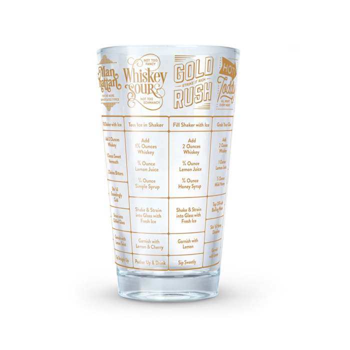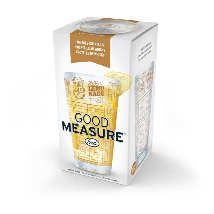 Mix it up with GOOD MEASURE! Fred's 16-ounce measuring glasses are printed with seven delectable cocktail recipes that are sure to turn you into the most-exacting mixologist. Available in seven individual styles: Whiskey, Gin, Rum, Tequila, Vodka, Beer - and the cure for all the others - Hangover. Cheers! Hand wash only. The Good Measure Recipe Glass makes a great gift!