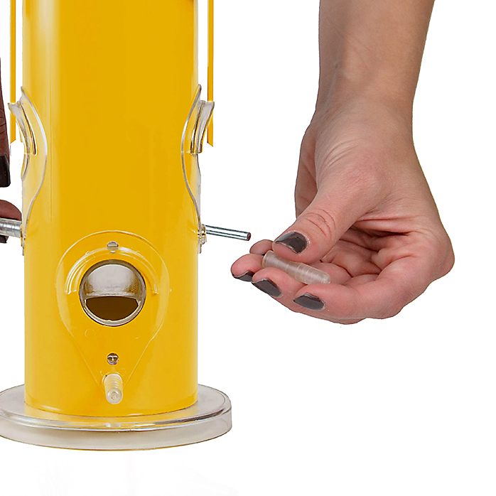 Cleaning and filling is an effortless process thanks to the removable perches and base. Simply pull off the perch caps and metal perches, followed by the plastic base to get easy access to the feeder’s interior. You’ll have no problem reaching all of the nooks and crannies, and can clean the pieces your backyard birds use most.