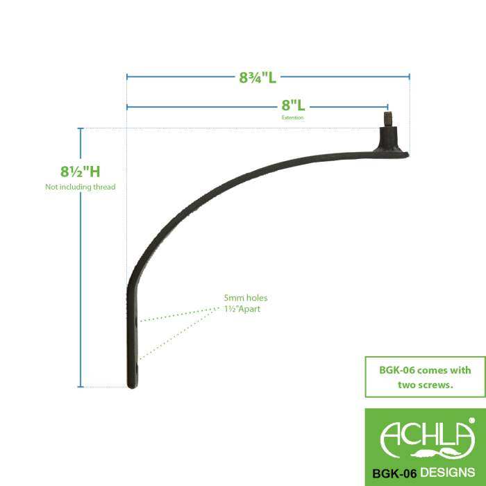 Wrought Iron Wall Mount Bracket Dimensions: 9"W x 9"H (not including threaded pin)