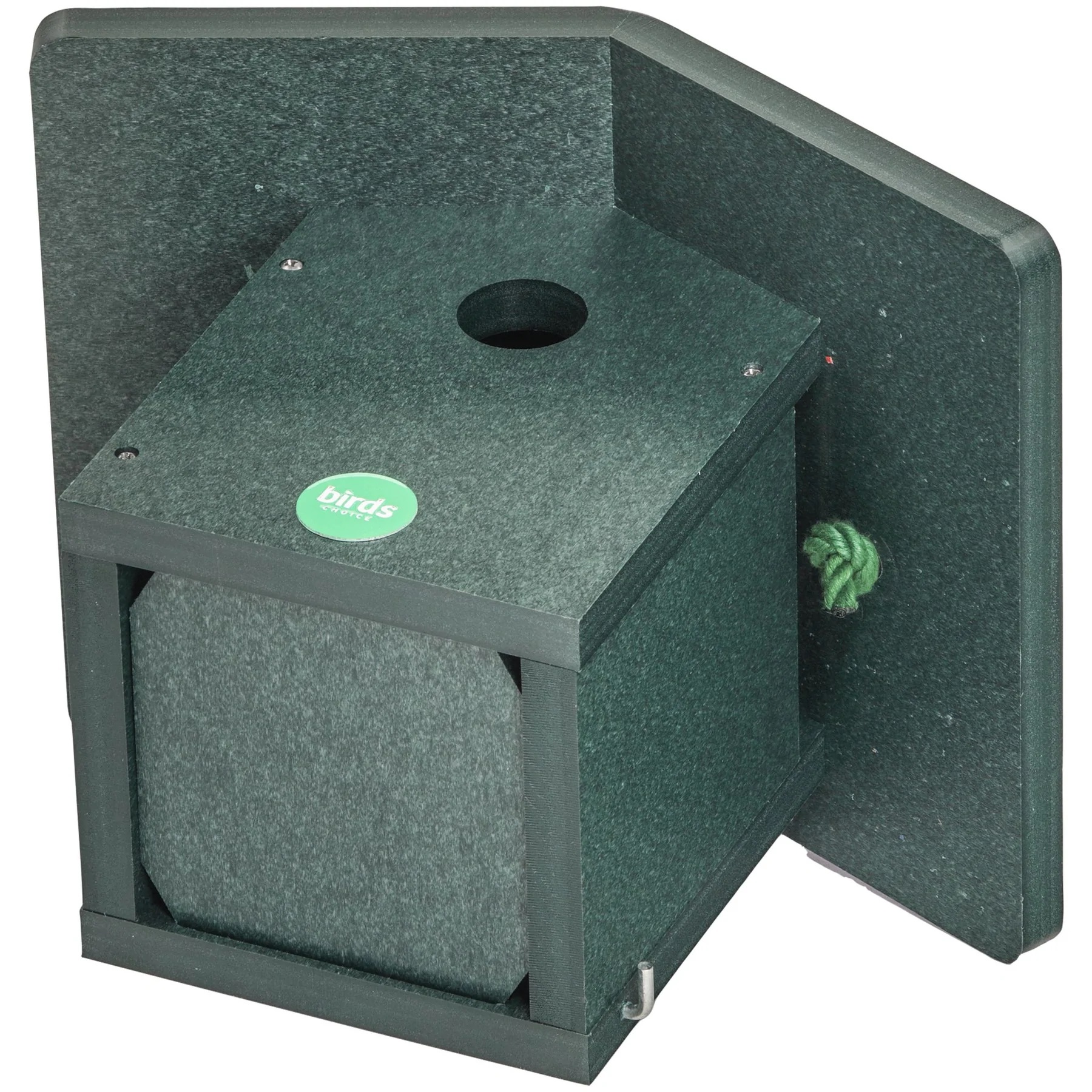 Color Pop Recycled Plastic Wren House Evergreen - The Color Pop Recycled Plastic Wren House is made from 15 plastic containers. Because this wren house is made from durable eco-friendly 1/2" HDPE recycled plastic, and is virtually maintenance free. Easy Care, Easy Clean - keeps its new appearance year after year. Guaranteed never to rot, crack, split, peel or fade. Stainless steel fasteners for extra-durability. Side door opens for viewing and cleaning. 1-1/4” entrance hole perfect for Wrens, Chickadees and other small songbirds. Provides proper drainage and ventilation. Includes polyester 3 strand hanging rope (Langman Rope). This quality wren house is proudly made in the USA!