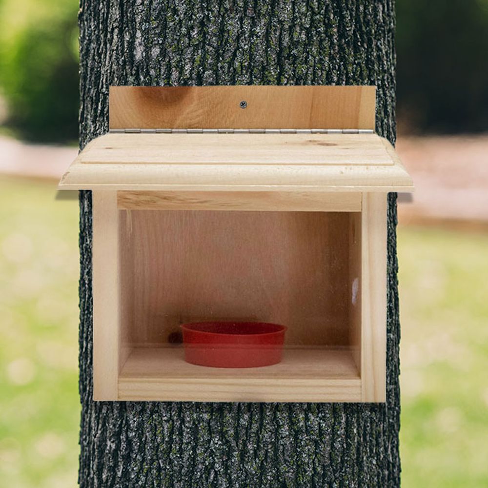 Combination Mealworm, Suet Balls & Peanut Feeder - Feed your feathered friends year-round with the Combination Mealworm, Suet Balls & Peanut Feeder. A unique stainless steel sleeve slides up or down to give access the desired type of food. Slide sleeve down to feed mealworms, slide up to feed peanuts and suet balls. Offering different seed mixes attracts the widest variety wide variety of birds, including Cardinals, Nuthatches, Chickadees, Finches and Woodpeckers. Roof slides up to fill with food, constructed of powder coated steel for durability.