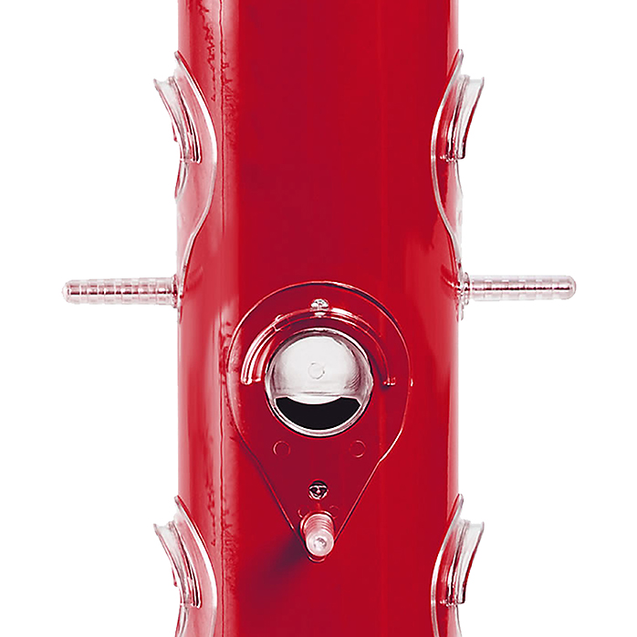 The Red 8 Port Metal Tube Feeder brings superior durability to your bird-feeding routine! With a metal reservoir, lid, and perches, this feeder will easily stand up to the rigors of outdoor use. The metal components feature a powder-coated finish to withstand rust so this feeder maintains its appeal for many seasons to come!