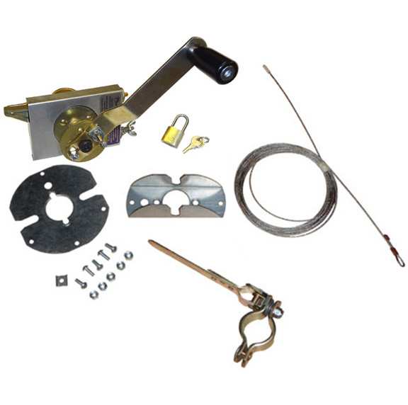 Winch Conversion Kit. Includes everything needed to convert any Lanyard Lock Rope System to a Winch Cable System. Fits MSS12 and TM12 series martin houses. The winch system provides effortless raising and lowering of the house. Includes easy to follow instructions, as well as padlock and key chain to secure the winch and prevent tampering. Made in the USA!