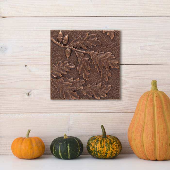 Our Aluminum Wall Decor looks outstanding when displayed individually or in groups. Create your own wall display using multiple decor pieces in various nature inspired themes. Can also be mounted on a fireplace mantel or tabletop display easel. The Oak Leaf 8" x 8" Indoor Outdoor Wall Decor makes a wonderful gift for the nature lover!
