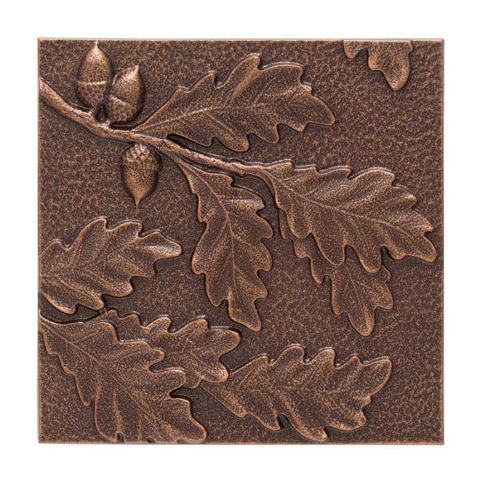 The Oak Leaf Aluminum Wall Decor is an ideal accent for a wall in your home or cabin. Finished in elegant antique copper, this stylish decoration features an intricately carved oak leaf design. 8"x 8" in size, the wall decor sits 1/2" off the wall once mounted. Manufactured in the USA from die cast, high-density aluminum alloy and Alumi-Shield All Weather Coating. Alumi-Shield - Protects against the harshest weather and environmental elements. Will not rust! Extends the product life and maintains the look and function. Makes a great first impression, enhancing the curb appeal and value of your home.
