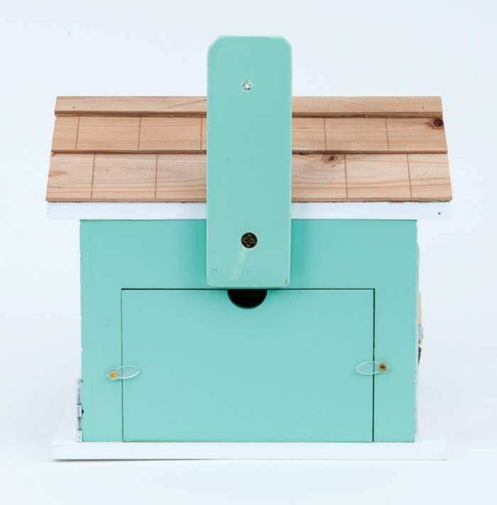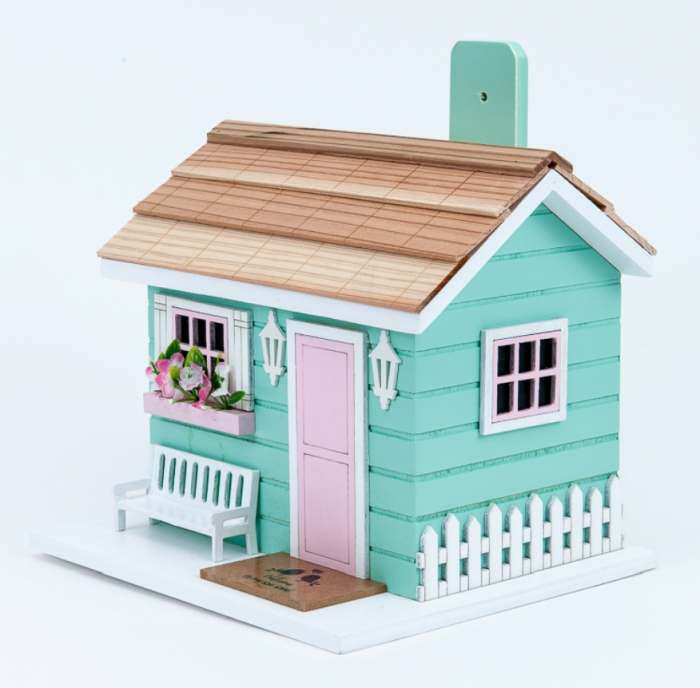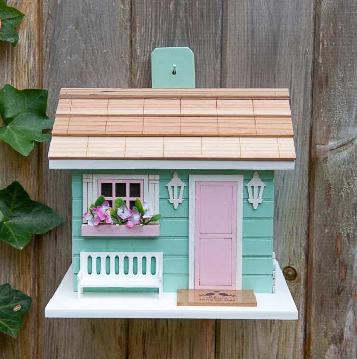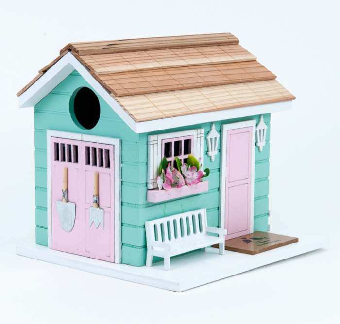 From our Tiny Bird House Collection, Men have their man caves, and now, women are getting their own special spot: the She Shed. A great place for your backyard birds to escape, this fully functional birdhouse is adorned with a front bench, window box flowers, picket fence details and garden tools on the side barn doors. The mint and pink color combo make this the perfect backyard bird gal pal spot. This well-appointed birdhouse is complete with drainage ventilation, clean out and made of wood, the best material for birds. Proper hole size, 1.25” perfect for wrens and other small songbirds. The She Shed Birdhouse makes a wonderful gift for the backyard birding enthusiast!