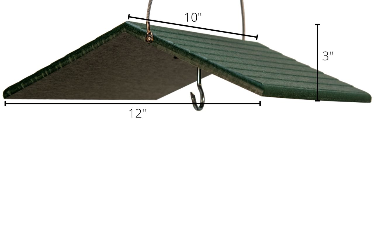 Songbird Recycled Poly Weather Cover Medium - Keep your existing bird feeder safe from rain or snow. Constructed of eco-friendly recycled plastic lumber. Built to last a lifetime. Will not rot, crack, splinter, peel or fade. Hanging hook is centered to protect from all angles. Works well with seed cylinders, suet feeders, nyjer and seed feeders, bluebird feeders, hummingbird feeders, butterfly and other feeders. Sturdy steel hanging cable included. Available in two sizes: Large and Medium. Proudly made in the USA!