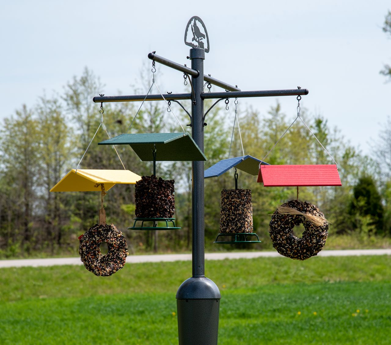 Great for hanging hummingbird feeders, seed cylinder feeders, suet feeders, nyjer and seed feeders, tray feeders, butterfly feeders and more!