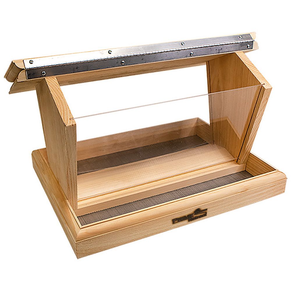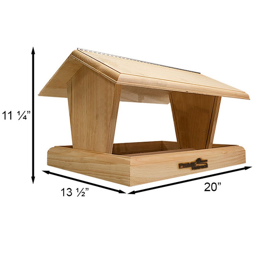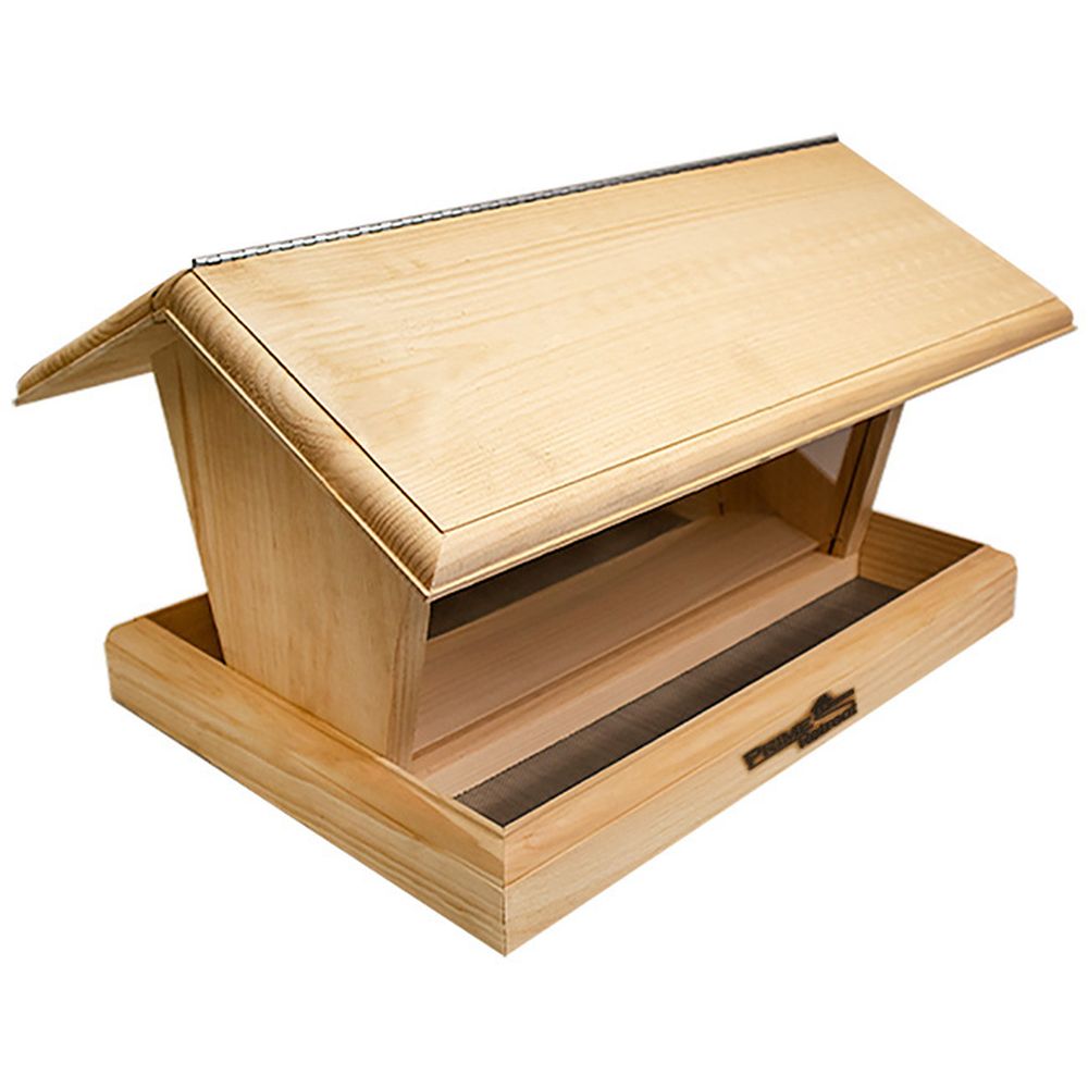 Prime DIY Large Capacity Hopper Feeder Kit - Undertake a quaint and rustic project in your bird garden while offering a substantial feeding station to your backyard birds with this amazing DIY Large Capacity Hopper Feeder. This significant feeder accommodates a generous amount of nutritional seed to feed an array of feathered friends, and its large platform allows several to feast at once. Precut pine and plexiglass panels help you easily construct a staunch and robust frame, with the pair of clear panels in the middle of the unit creating the item's feeding reservoir. The hopper can hold a plentiful 9.5 quarts of mixed seed, cracked corn, or peanut chunks, allowing you to sustain a bevy of hungry birds while cutting down on the frequency of refills. Feed levels are simple to monitor via the clear plexiglass panels, and the wood surrounding the item's base sets up an ample, convenient feasting platform. Metal screening on the feeder's base ensures adequate drainage to prevent a spoiled treat, while the pitched roof overhangs all sides of this expansive feeder to protect seed and feathered friends from rain. A hinge on the roof's top lets you lift one side easily upward to perform refills and regular cleanings, while a wooden seed diverter in the center of the reservoir angles slightly downward on both sides to helpfully distribute the feed to either side, eliminating unwanted accumulation. For a lofty, striking showcase in the bird garden, attach a mounting bracket (not included) to the base of this hardy unit. This simple project provides relaxing enjoyment in your outdoor space, and repeated exposure to outdoor elements over time will weather the feeder to a lovely and charming gray tone, offering dynamic allure in your bird sanctuary. Complete a fun and relaxing project and add a beautiful accessory to your bird haven with this sizable and magnificent DIY Large Hopper Feeder. Assembly required. Made in the USA!