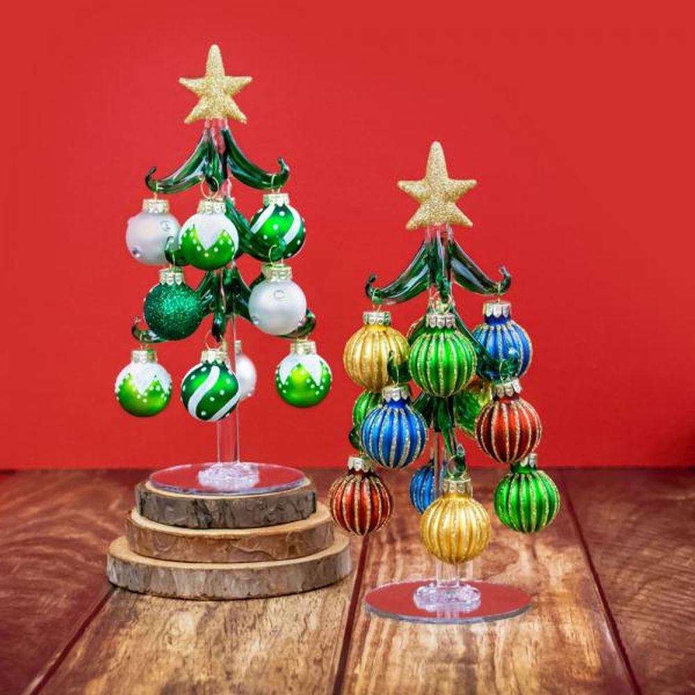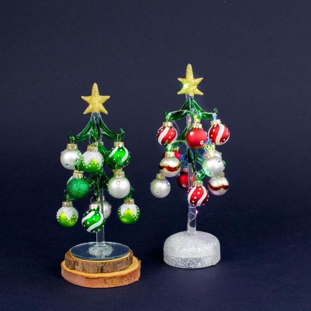 Glass Tree Green with Green and White Ornaments 8 Inch - Add a special holiday touch with a beautiful hand-crafted miniature glass Christmas Tree. Each tree features removable ornaments. The perfect gift or decoration for home, office, desk, or table. Enjoy this special item year after year. Makes a wonderful gift for a co-worker, teacher or dear friend. Enclosed in a foam-lined gift box that protects and can used to restore the tree. Great for decoration, "table-scraping" or an added touch of whimsy during the holidays.