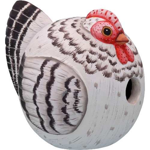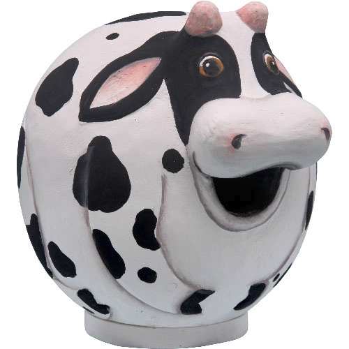 These Gord-O Cow shaped birdhouses are 'Green', Eco-Friendly and Good For The Environment! Bobbo's hand-carved and hand-painted 'For The Birds' Bird Houses are produced from fast growth renewable albesia wood. The paints and finishes used are non-toxic. These unique, functional birdhouse designs come complete with cleanouts, a necessity for our avian friends. Includes loop for hanging. 1-1/4" entrance hole will attract small songbirds. For The Birds Birdhouses make wonderful gifts for the backyard birding enthusiast!