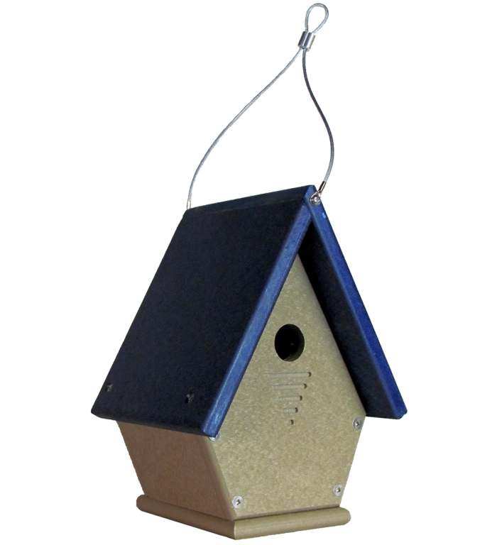 Sweet and charming, our eco-friendly Amish Poly Wren Church House has its own steeple and welcomes your feathered friends to stop by! Designed and built in a small Amish woodshop in Indiana, this birdhouse will bring a touch of beauty to your yard for years to come. Our birdhouses and feeders are made of Polywood, which is molded from 100% recycled milk jugs. This eco-friendly substance is made from recycled plastic products and unlike wood, it requires no maintenance such as periodic re-painting. You are supporting the environment with this birdhouse that is maintenance free and resists mold and mildew. Built to last a lifetime. 1-1/8" diameter entrance hole. Easy side cleanout. Hang, post, wall or fence mount. Proudly made in the USA!