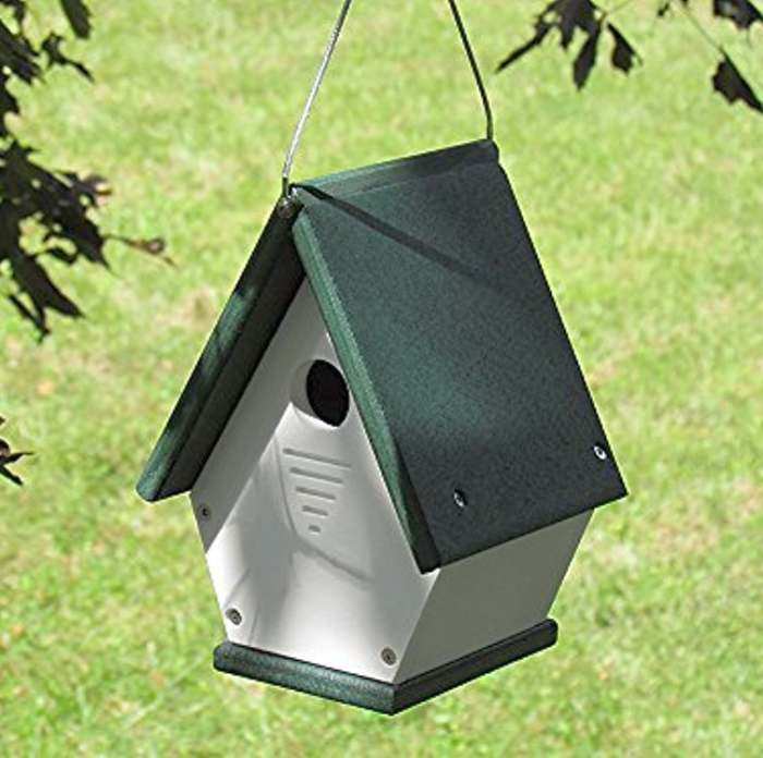 Transform your outdoor space into an inviting backyard wildlife sanctuary! Deluxe Recycled Plastic Duck House Green/Black - Create a haven for waterfowl in your backyard with the Recycled Plastic Green and Black Duck House. Adding this unique, durable shelter to your acreage can entice different birds to roost, and help support local duck or geese populations. These birds require a covered shelter or abandoned cavity to roost, but are often not able to excavate their own, so this generous home fantastically meets their needs. The rectangular, black frame forms a significant nesting area for up to 8 small ducks or 2 geese, topped by a gently curved, green roof. All parts are crafted of hardy, recycled plastic for health and longevity, and an arched door with ramp allows waterfowl to enter.