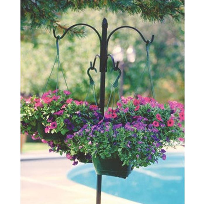 Our 4-Sided Shepherd Hook is a welcome addition to any garden, backyard or porch, with its decorative hooks and finial. Perfect for hanging a plant basket or bird feeder, creating an attractive environment sure to please the tiny gentle creatures. Square tubular powder coated steel construction with attractive black finish makes it suitable for all decors to last a lifetime.