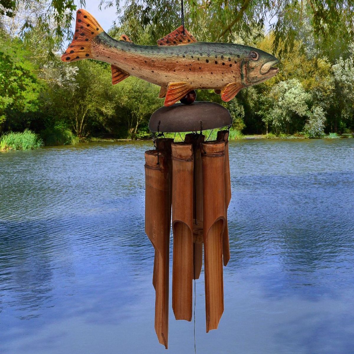 Our 'For The Birds' Trout Bamboo Wind Chimes offer great color and soothing sound to enhance your outdoor living experience. Entirely hand carved and hand painted using all natural bamboo and fast growth renewable albesia wood we have selected our most popular nature themes to give you a collection that will satisfy the nature lover in all of us.