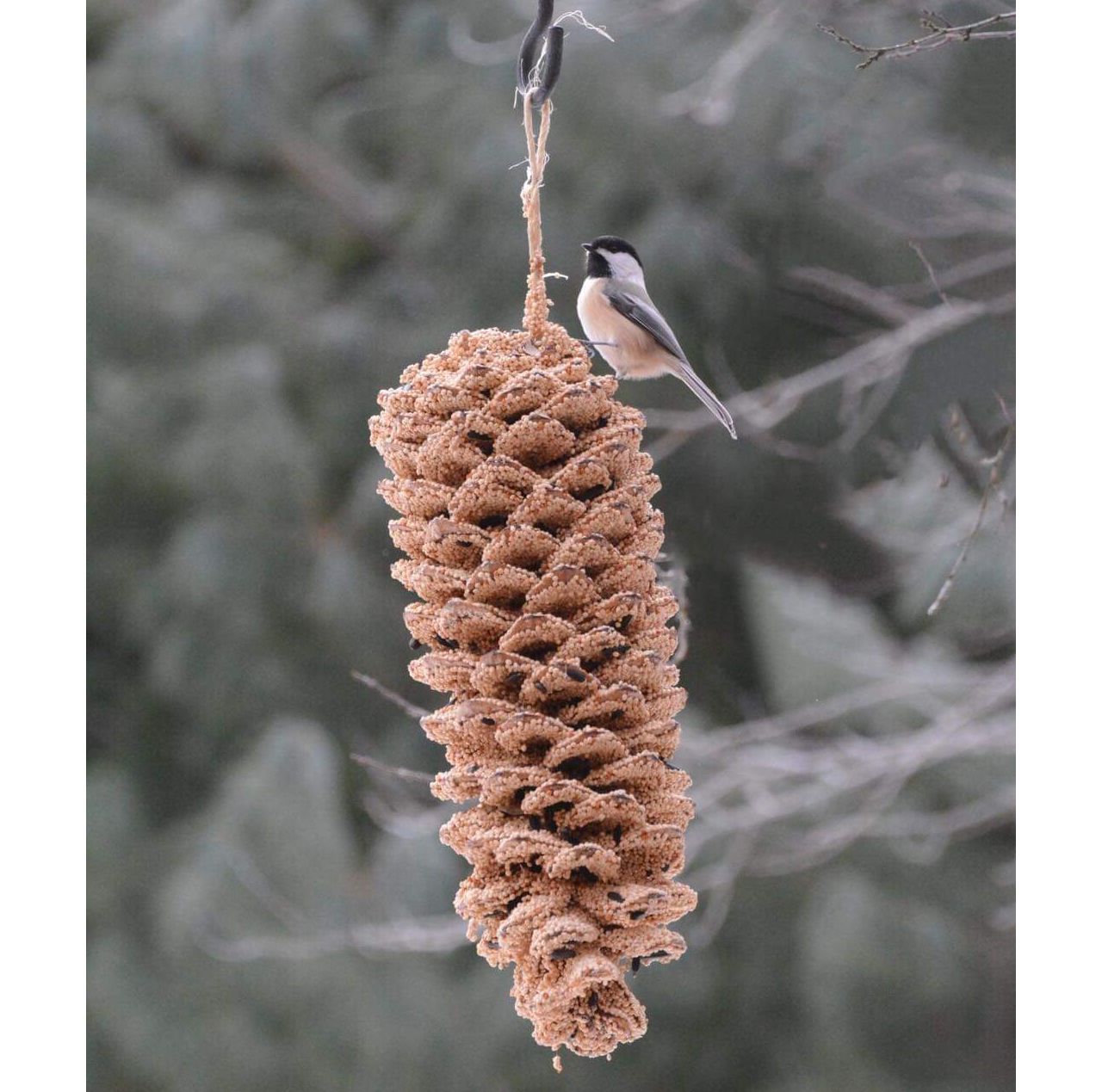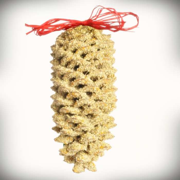 Real pine cone is coated with nutritious seed that appeals to a wide variety of birds!