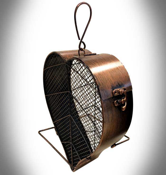 Entice your feathered friends to your yard with this colorful wire mesh feeder boasting durable, weather-resistant metal and large feed capacity so your neighborhood birds can enjoy all the seed they need throughout the year. Our Cooper Leaf Mesh Seed Feeder comes with two perches and chain/hook at the top for hanging. More surface area for birds to cling to the wire mesh. Attract a wide variety of songbirds with the Copper Leaf Mesh Bird Feeder.