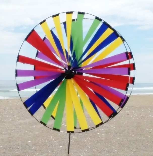 The super large 48 inch, counter-spinning wheels on the Twin Wheel Spinners create a mesmerizing rainbow kaleidoscope effect that will delight family and friends! Perfect for the yard, garden, at the beach, or anywhere you want color and to get people's attention.