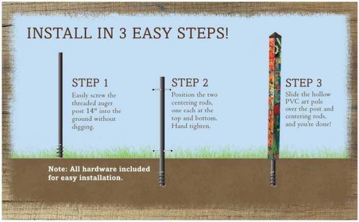 Our exclusive, Art Poles are an impactful way to bring beautiful artwork to any landscape. Ultra-durable for years of enjoyment. Easy installation—no digging required. All hardware included. Proudly made in the USA!