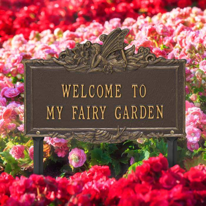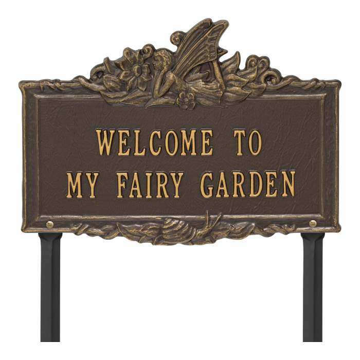Welcome to My Fairy Garden Non-Personalized Lawn Plaque in Bronze/Gold (shown above)