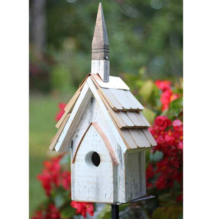 Just the sanctuary your backyard birds have been looking for. Solid cypress with a painted crackle finish that is fully functional and hangable. Solid cast iron steeple along with copper cleanout door. Every backyard needs a Classic Chapel!