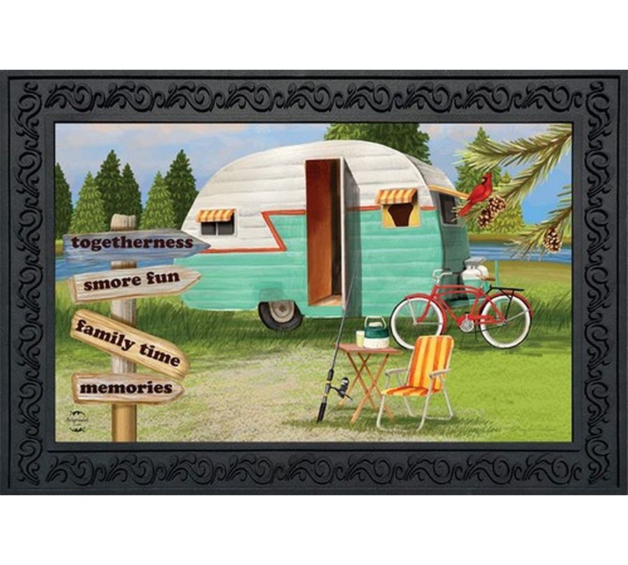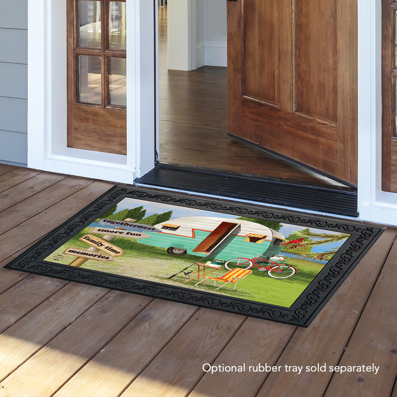 Woodsy Camper Doormat - Add a colorful, welcoming touch of the season to your home and garden with a doormat from Briarwood Lane. Our original artwork printed on polyester material with a non-slip rubber backing. The doormat can be used stand-alone or as interchangeable inserts in our Briarwood Lane outdoor decorative mat tray or indoor comfort tray as shown, sold separately. Doormat measures 18" x 30".