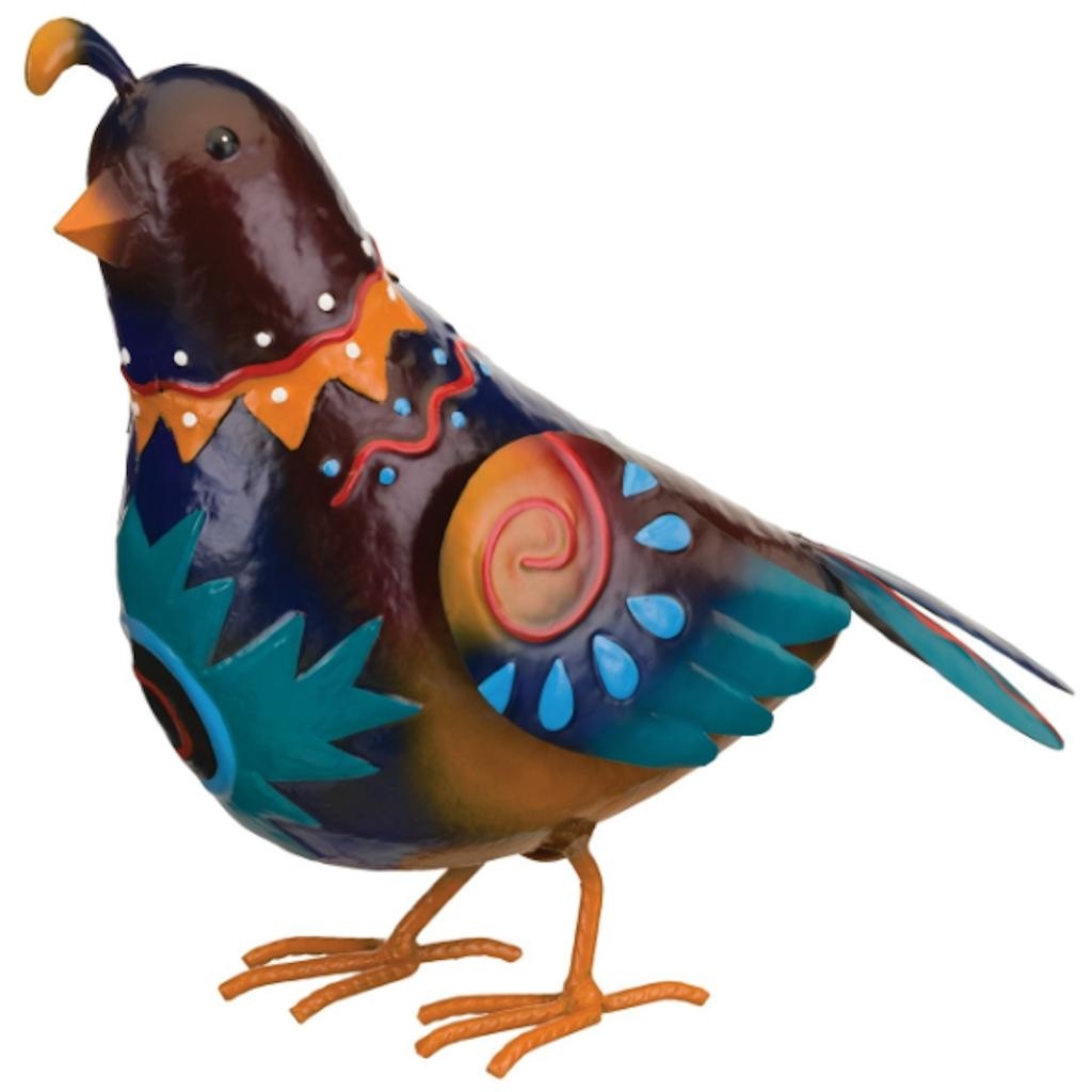 Sedona Quail Decor Sculpture - This unique piece is influenced by American Indian design. This design is almost a foot tall and features rich, dark hues that are beautifully offset by bright accents and vivid detail. The hand-painted finish utilizes anemometer paint and powder coating to resist fading and rust.