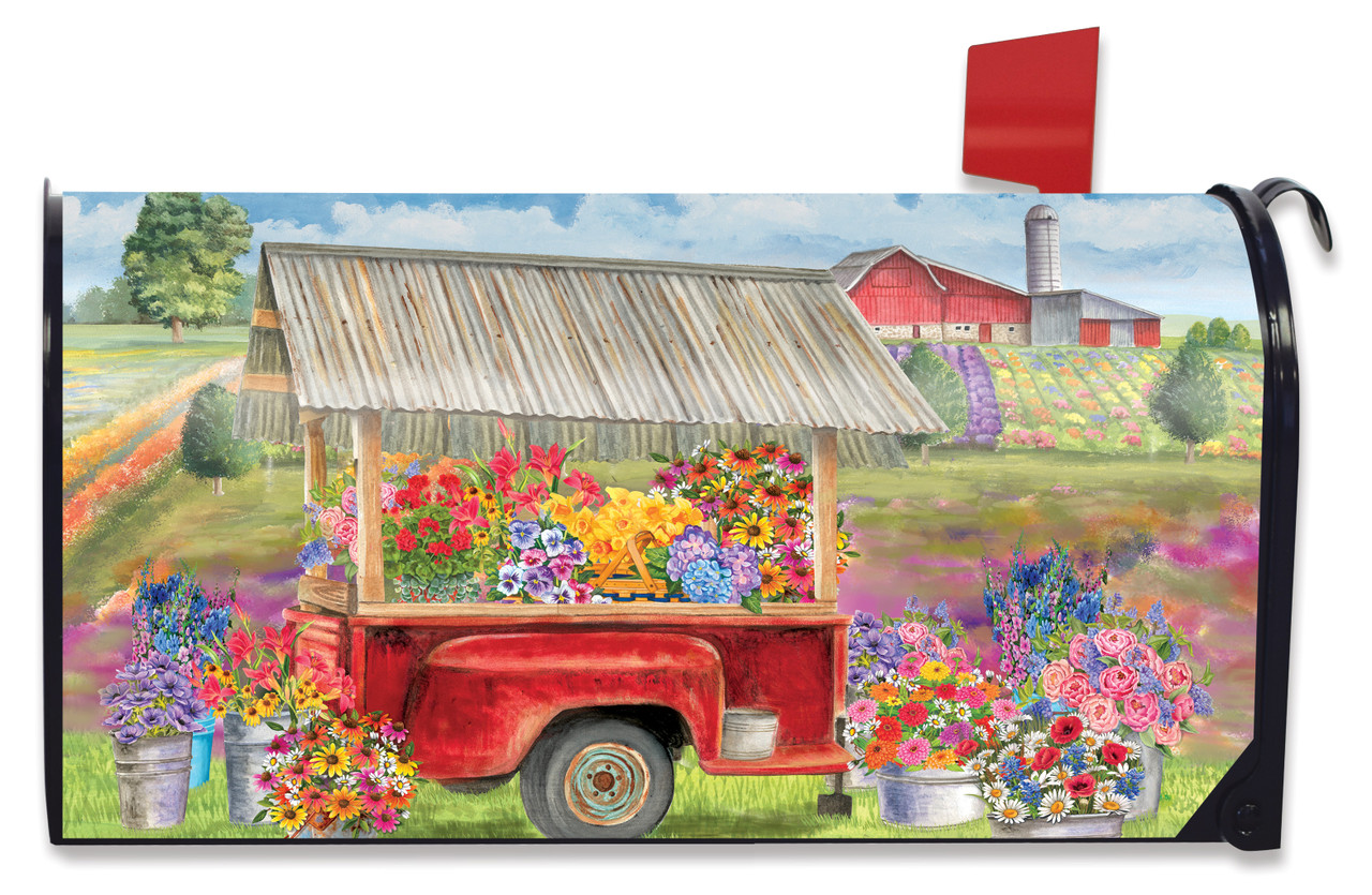 Spring Farm Floral Magnetic Mailbox Cover - Add a colorful, welcoming touch of the season to your curbside mailbox with a magnetic mailbox cover from Briarwood Lane. Made to fit standard size steel mailboxes measuring 6.5" x 19". Our original artwork is printed on durable fade resistant all weather vinyl with magnetic strips. A great way to dress up your mailbox. No tools required!