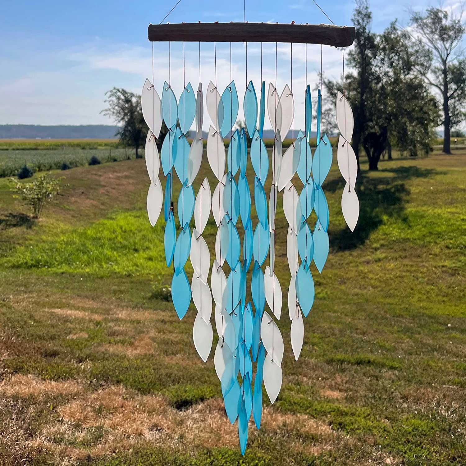 Let the sounds and colors of the Deluxe Blue Waterfall chime fill your backyard!
