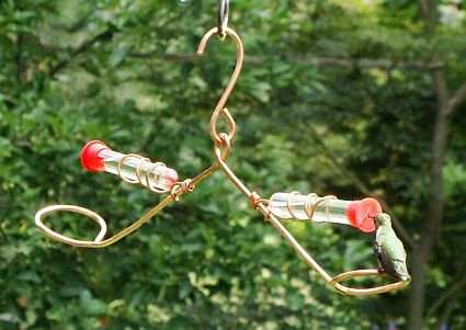 Fun to watch and great entertainment! When a hummer lands on one of the perches their body weight makes it tip down and teeter totter. Since 1997 the original Tweeter Totter feeder has been a favorite of hummingbird enthusiasts. Constructed of solid heavy gauge copper. It has 2 double wall thick glass feeding tubes. Makes a wonderful gift for the hummingbird lover!