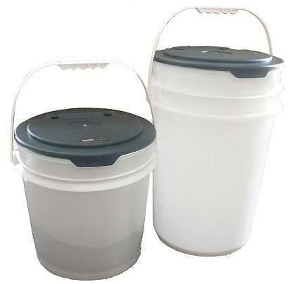 These functional and economical seed buckets are perfect for keeping your bird seed or pet food fresh. Thick white plastic buckets with handles. Hinged green snap open lid for convenience access. Buckets come in 3.5 gallon or 6 gallon sizes. Made in the USA!